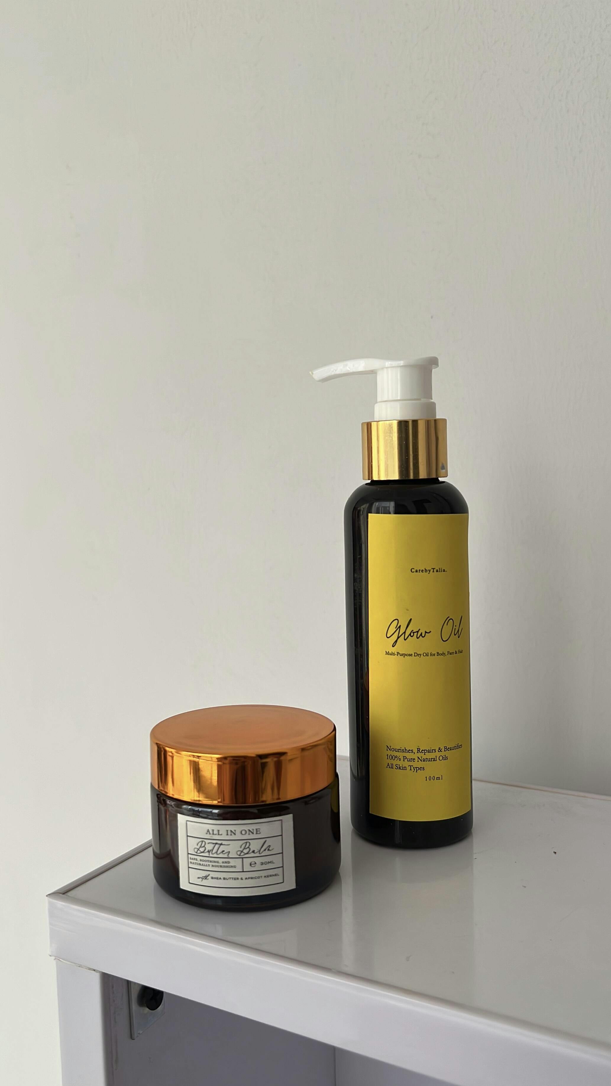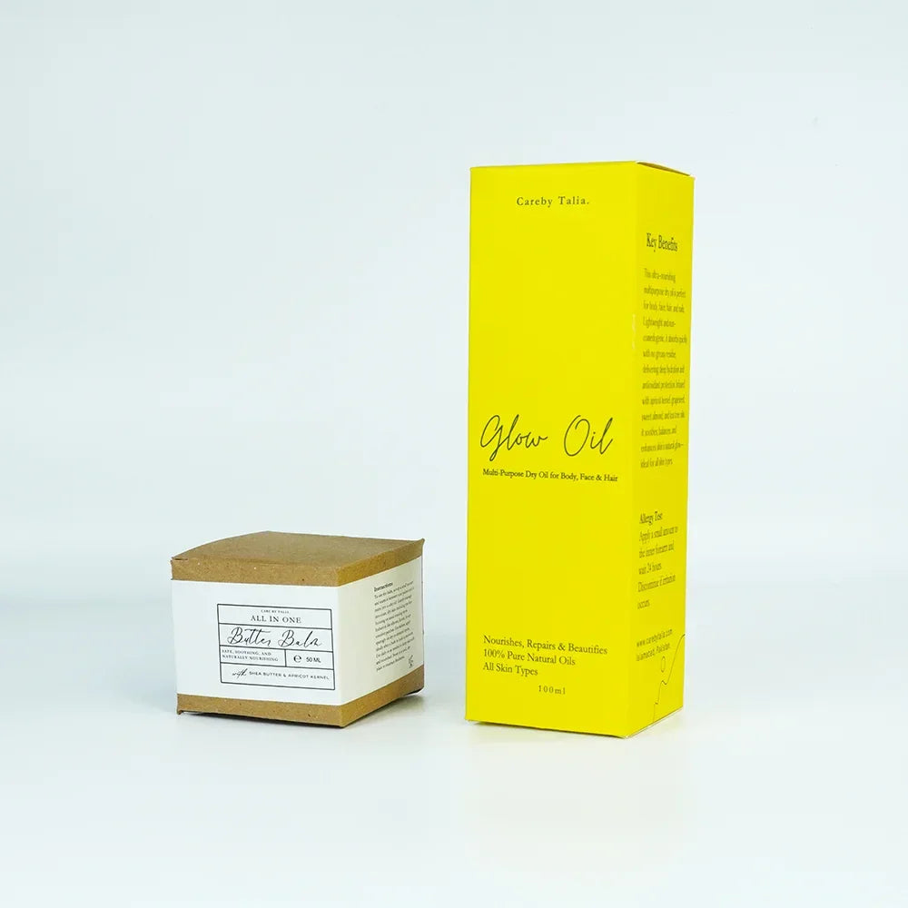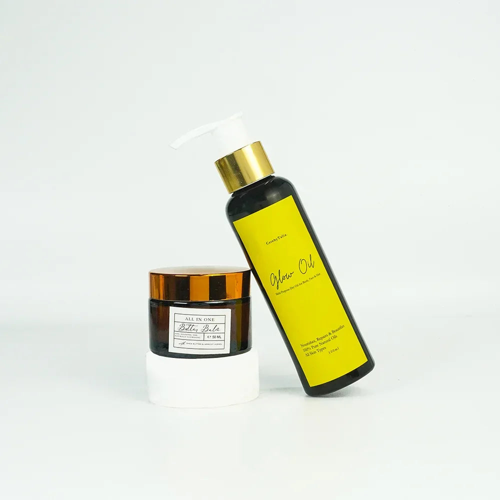 Includes our signature Butter Balm and Dry Glow Body Oil at an unbelievable discount. Hydrate, glow, and smell amazing!